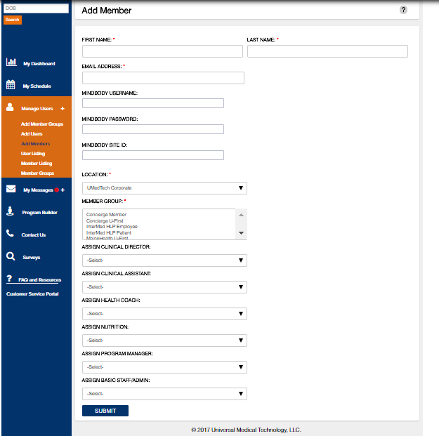 You must also assign at least one staff/provider (Clinical Director, Clinical Assistant, Health Coach, Nutrition, Program Manager, Basic Staff/Admin). It is recommended to assign 1 Provider and 1 Basic Staff/Admin to each member.