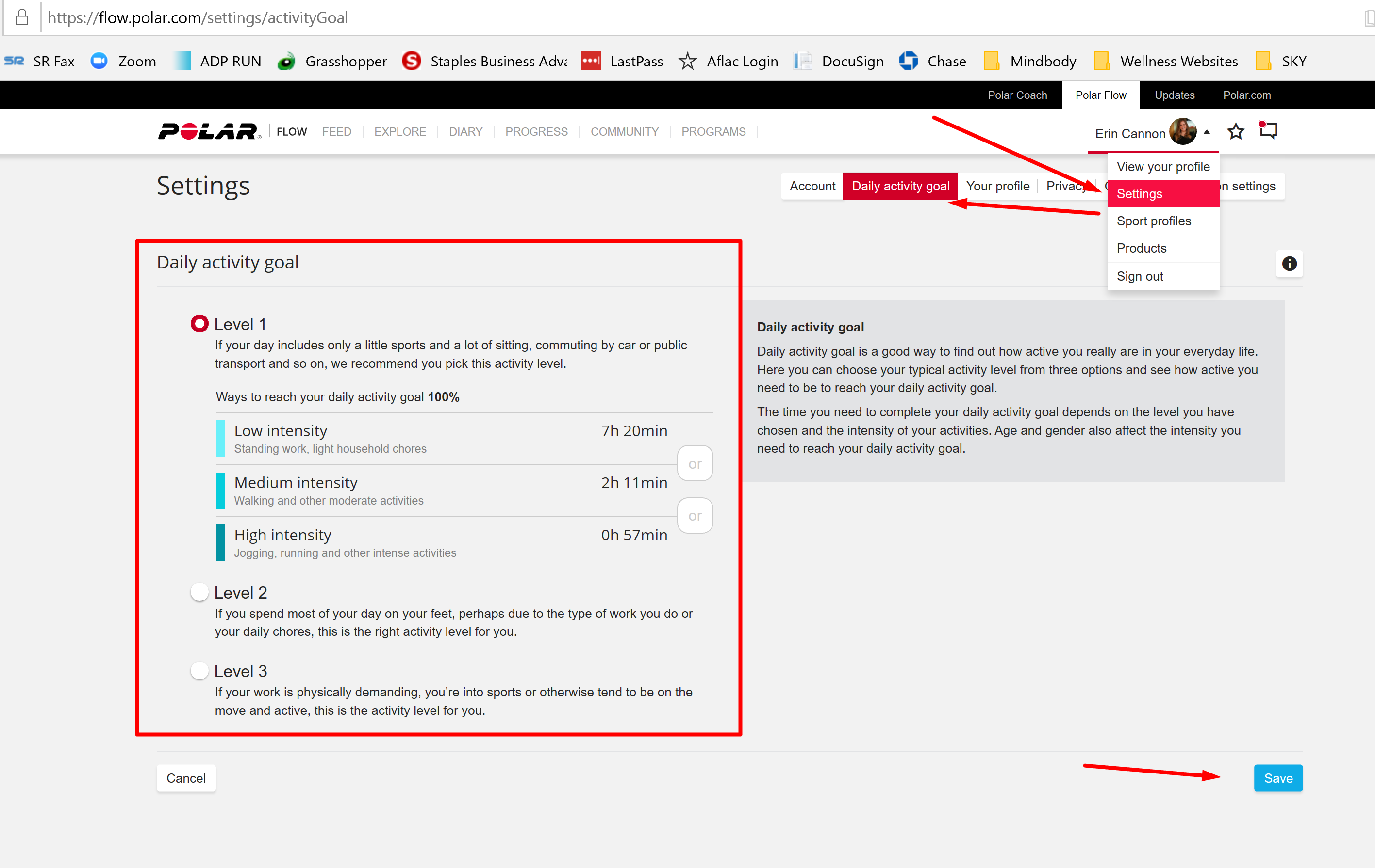 If your typical day falls under the description of Level 1, your Daily Goal will be based upon the following intensity levels of your daily activity, or a combination of any of the three levels: